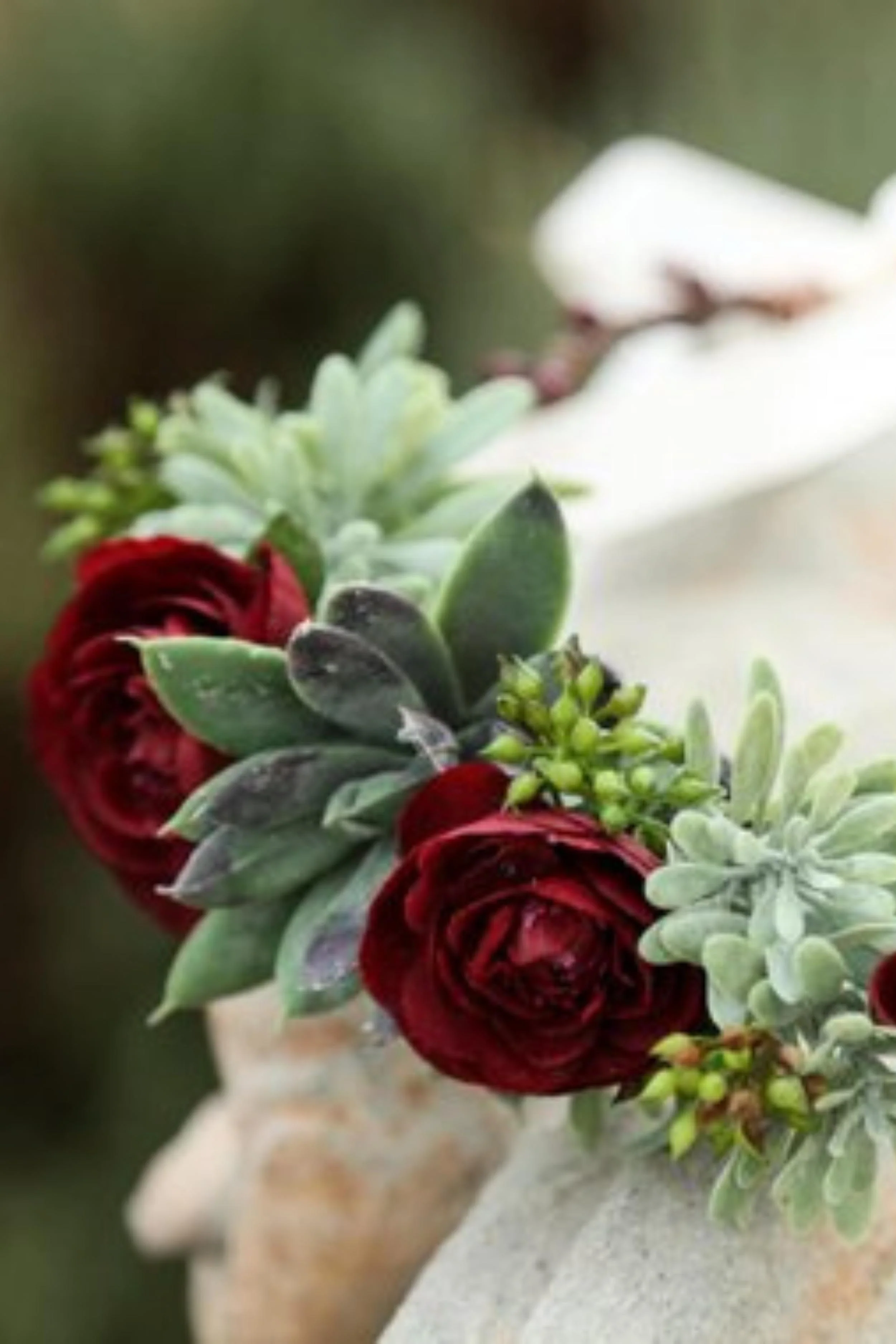 Flower Crown - Burgundy Roses With Succulent Plants